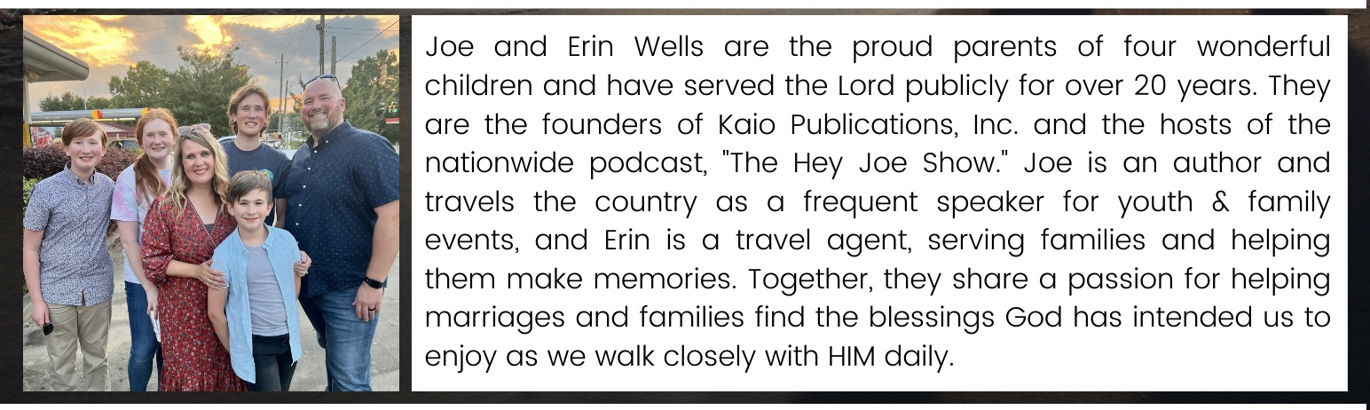 Joe and Erin Wells The Abundant Marriage: A Tighter Knot Cultivating Faithfulness in Your Family Forged By God (Men’s Class) The Unknown (Women’s Class) Parenting With Purpose 5 Secrets to 50 Years of Marriage The Heart of A Servant Share this: Share on X (Opens in new window) X Share on Facebook (Opens in new window) Facebook Like Loading...